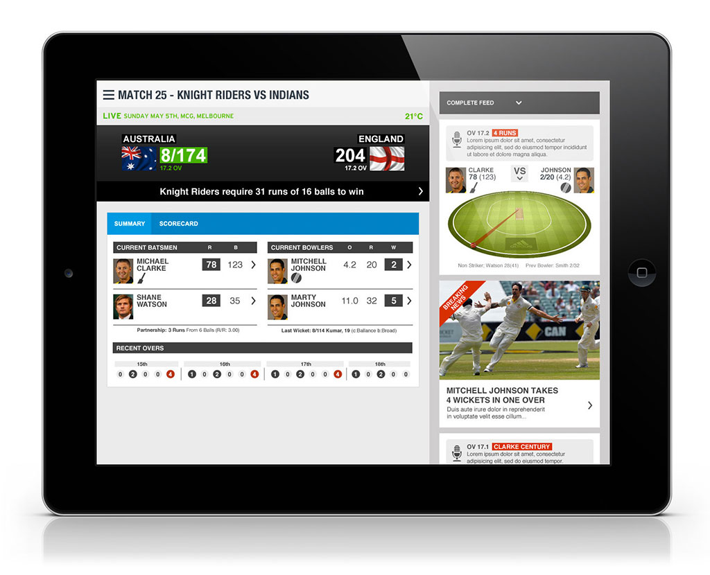 More Info Approach to Designing Responsive Cricket Scoreboard (PDF) Prototype and high level wireframes (Axure)